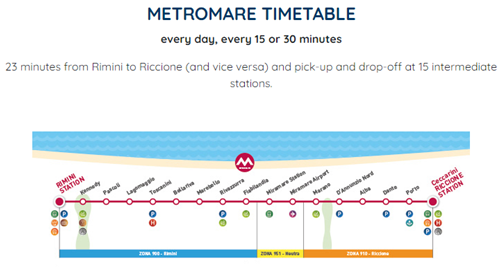 METROMARE is the recently inaugurated, zero emissions electric bus that connects Rimini and Riccione railway stations. It runs daily every 25 minutes with 15 intermediate stops.